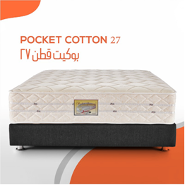 تحتوى المرتبه بوكيت قطن على السوست المنفصله التى تعطى الجسم الراحه والجوده العاليه كما تحتوى على طبقه الاسفنج التى تساعدالراحه وطبقه القطن التى تساعد على النعومه لنوم عميق واحلام سعيده. هى عباره عن شاسيه من السوست منفصله المصنوعه من الصلب المقوى ليضمن عدم حدوث اى هبوط فى المرتبه باالضافه انها معالجه ضد الصدأ باالضافه الى السلك الذى يربط السوست ببعضها بطريقه معينه بحيث يضمن عدم خروج السوست خارج الشاسيه وعدد السوست 255سوست فى المترالمربع طبقه اللباد قطن مضغوط حراريا يعمل كعازل بين السوست وطبقات االسفنج حتى اليحدث احتكاك بين السوست والطبقات التى فوقها ويعطى صالبه للمرتبه ويعزل صوت السوست. طبقه اسفنج 1.5سم كثافه 20+طبقه فايبر 200جرام طبقه اسفنج يانسن 4.5 سم كثافه 30 وجه طبقه قطن من كل وجه اسفنج1سم كثافه 20+فازلين 20 جرام قماش دبل نت المعالج ضد البكتريا وحشرات الفراش فتحات التهويه موجوده على جانبى المرتبه وزعت بطريقه مدروسه لضمان التهويه الجيده والكامله داخل المرتبه مما اليدع اى مجال لروائح كريهه او تعفن داخل المرتبة